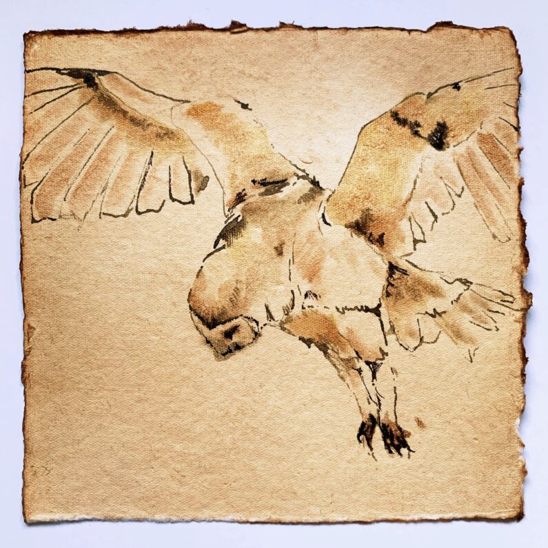 Walnut ink & gold sumi inks on 8×8 handmade, recycled paper (very thick).